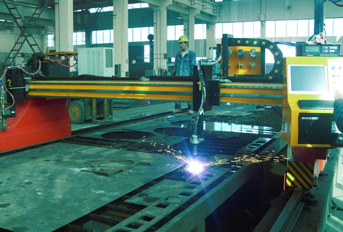 我公司主要采用進口數(shù)控火焰(等離子)切割機,可對板進行100%全自動數(shù)控切割下料。主要優(yōu)點有: